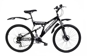 Tackle the terrain with style on the Boss Stealth Mountain bike that'll put a smile on your face without putting a hole in your wallet. The 18” Hi tensile steel full suspension mountain bike frame with zoom forks and with 21 speed Shimano gears and easy to use Microshift rotational shifters ensuring the ultimate handling whilst shifting through the gears to cope with the demand in pace. The bicycle is also equipped with mechanical front and rear disc brakes and wavey style lightweight rotors to maximise the stopping power over standard brakes. The Black alloy rims help to keep the weight to a minimum and with sure grip mountain bike tyres this bike is equipped for on or off road use. The extra’s required when purchasing a cycle are standard equipment on this model so the premium mudguards will provide protection from the elements. The quick release seat post allows easy adjustment to the rider setup and quick release front wheel makes for easy transport whether it be in the car to your local trails or for the daily commute. This bicycle is suitable for inside leg ranges: 26-33 inches or 66-84cm. Please note that this bicycle is part assembled on delivery and therefore you will be required to fit certain parts and make setup adjustments to components such as the gears and brakes prior to use and also on an ongoing basis for maintenance purposes.